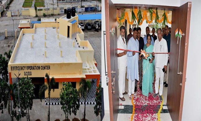 મોરબી જિલ્લા સેવા સદનના કેમ્પસમાં રૂ. 1.74 કરોડના ખર્ચે નિર્મિત ઈમરજન્સી ઓપરેશન સેન્ટર(ડિઝાસ્ટર)નું જિલ્લા પંચાયત પ્રમુખ હંસાબેન પારેઘી વરદ્ હસ્તે તથા ધારાસભ્યો સહિત પદાધિકારીની/અધિકારીઓની ઉપસ્થિતિમાં રિબીન કાપી અને દિપ પ્રજ્વલન કરી લોકાર્પણ કરવામાં આવ્યું હતું.